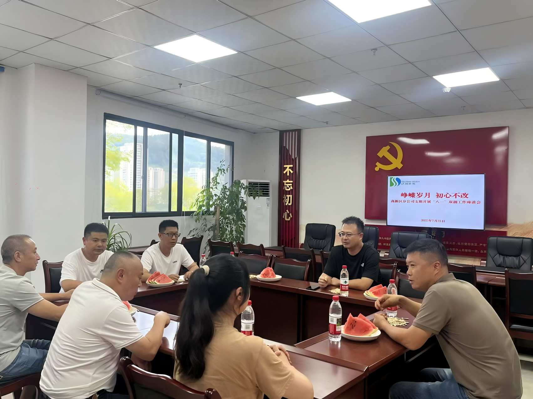 集團(tuán)上下掀起擁軍慰問熱潮,為 153 名退役軍人和 6 名軍屬送去節(jié)日慰問與美好祝福,將組織的關(guān)懷精準(zhǔn)送達(dá)。黨委書記、董事長盧輝帶隊(duì)走訪慰問供水生產(chǎn)中心部分退役軍人代表,與他們親切交流,感謝他們?yōu)閲液蜕鐣?huì)作出的貢獻(xiàn),高度贊揚(yáng)他們?nèi)肼氁詠硎冀K堅(jiān)守軍人本色,尤其在高溫酷暑的嚴(yán)峻 “烤” 驗(yàn)下,始終堅(jiān)守崗位、無懼辛勞,用汗水為城市供水安全筑牢了堅(jiān)實(shí)防線。
