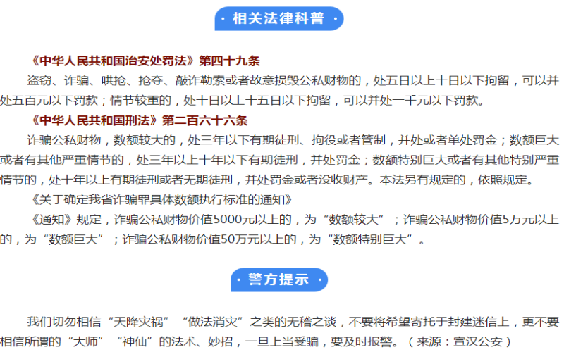近日,宣漢縣公安局蒲西派出所接到轄區(qū)群眾報警,稱其因相信“高人做法”祛病消災(zāi)被人詐騙3000元。