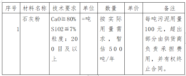 1.1項目名稱:達州市惠泉污水處理有限公司石灰粉采購項目